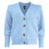 Mooie kleur lichtblauw. Lekker warm en leuk met de bruine knopen. Goed te combineren met een blauwe jeans, cognac kleur riem en schoenen.